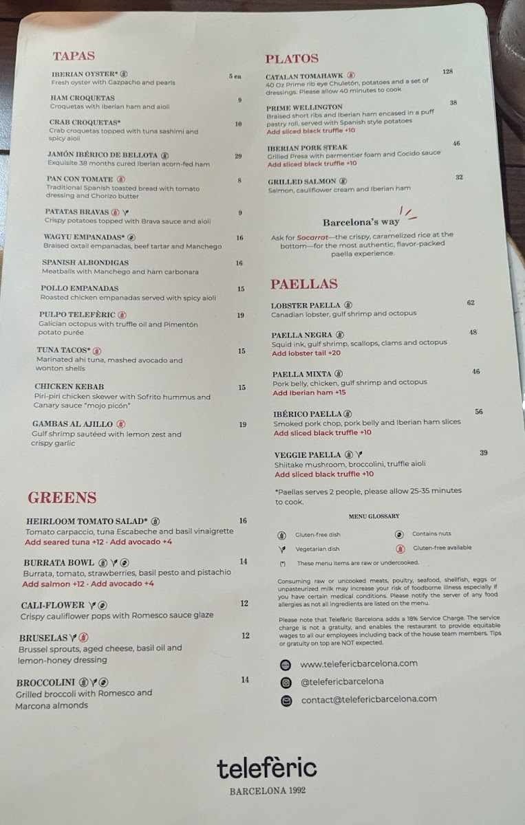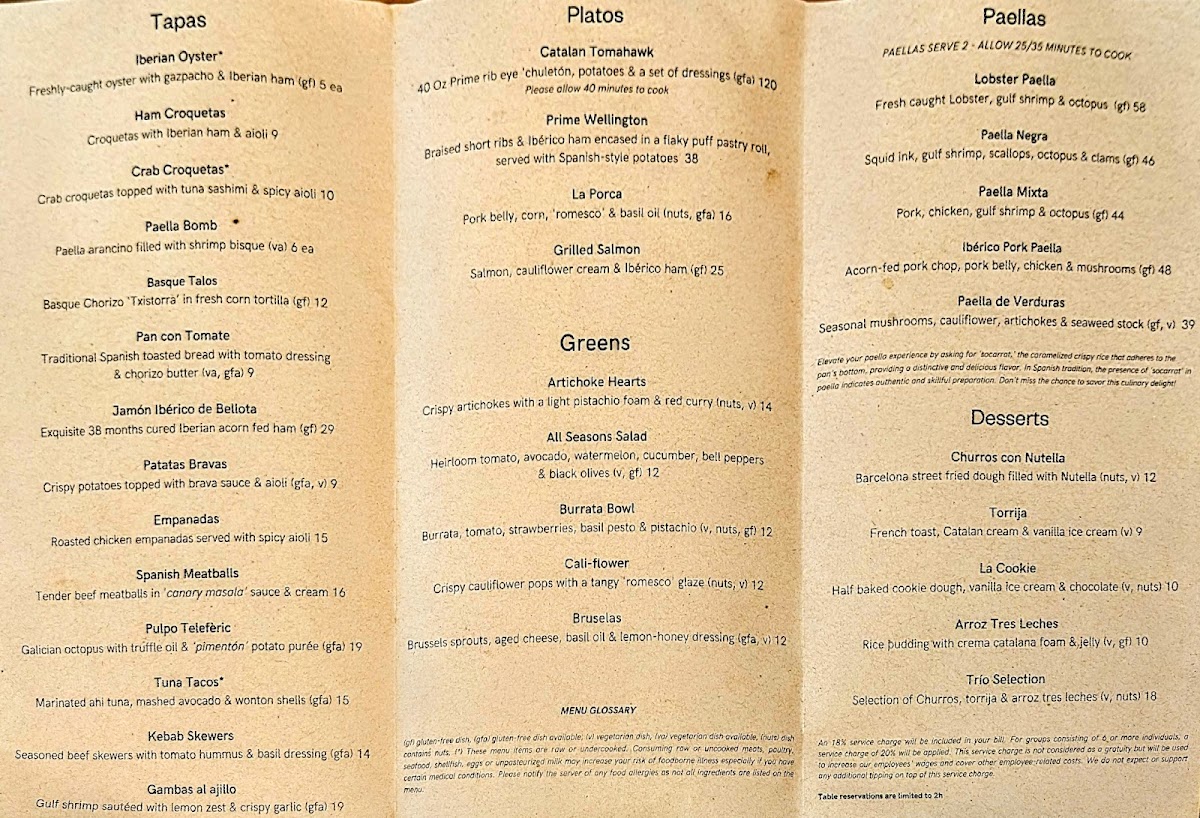 Serves 2 Gourmet assortment of our best seller tapas, paella & desserts: - Paella Lobster: Lobster, gulf shrimp, calamari & octopus (gf) * Please note the take version of the paella lobster comes with the lobster peeled. - Gambas al ajillo: Gulf shrimp with lemon & crispy garlic (gf) - Crab Croquettes: King crab croquettes with tuna sashimi & aioli (gfa,v) - Jamón Ibérico de Bellota: Iberian pata negra ham 38 months cured (gf) - Pulpo Telefèric: Galician grilled octopus with truffle oil & pimentón potato puree - Nutella Churros: Barcelona street fried dough with Nutella (v, contains nuts) - Torrija: French toast with Catalan cream & vanilla dressing (v) Select to take it out in a Paella Pan or Box to Go in the options below. Why Choose the Paella Pan? Served in a real Spanish paella pan for an authentic experience. *A deposit is required and will be fully refunded upon return of the pan. You have 90 days to return it.*